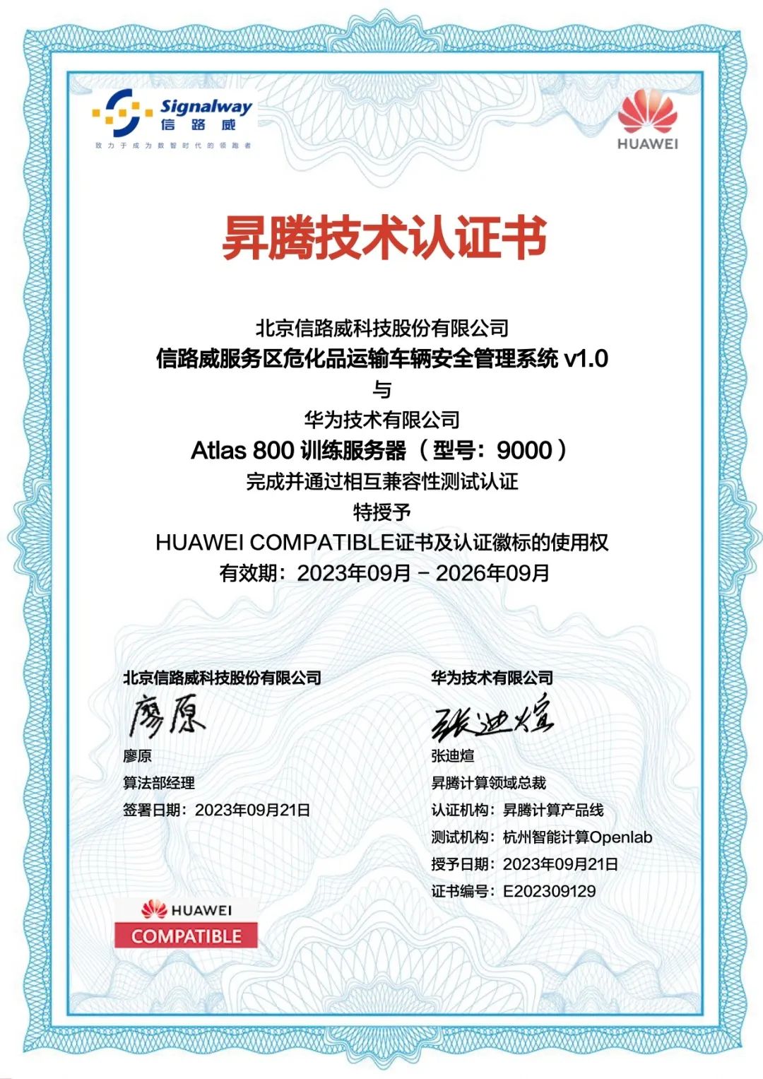 共創(chuàng)雙贏 | 信路威喜獲三項(xiàng)華為昇騰技術(shù)認(rèn)證書!