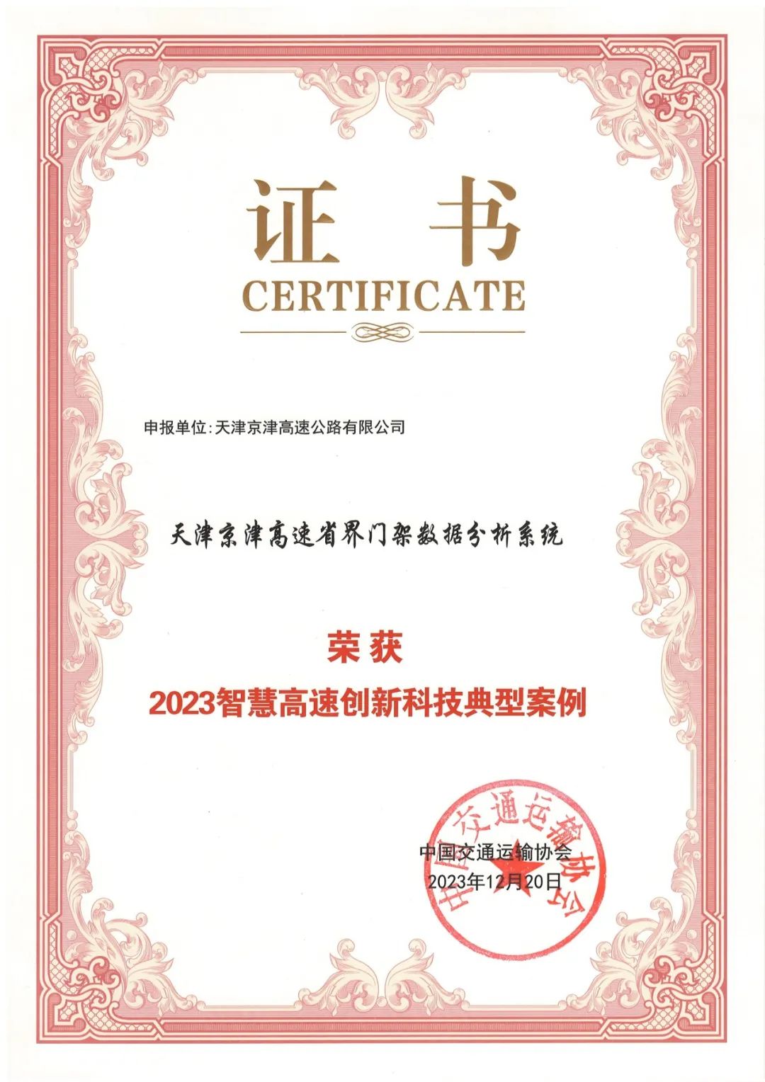 近期,中國高速公路綠色智慧發(fā)展大會在河北成功舉辦。中國交通運(yùn)輸協(xié)會開展的“高速公路綠色低碳典型案例”、“智慧高速創(chuàng)新科技典型案例”、“高速公路數(shù)字化轉(zhuǎn)型典型案例”推薦活動結(jié)果同期發(fā)布,天津京津高速公路有限公司申報(bào)的“天津京津高速省界門架數(shù)據(jù)分析系統(tǒng)”獲得了“智慧高速創(chuàng)新科技典型案例”證書。