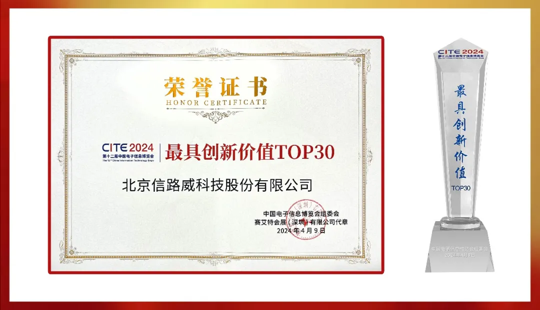 近日,在第十二屆中國(guó)電子信息博覽會(huì)(CITE 2024)的盛大開幕式上,備受矚目的專精特新系列獎(jiǎng)項(xiàng)正式揭曉。信路威憑借卓越的技術(shù)實(shí)力和創(chuàng)新能力,榮獲了2024年度“最具創(chuàng)新價(jià)值TOP30”的獎(jiǎng)項(xiàng)。