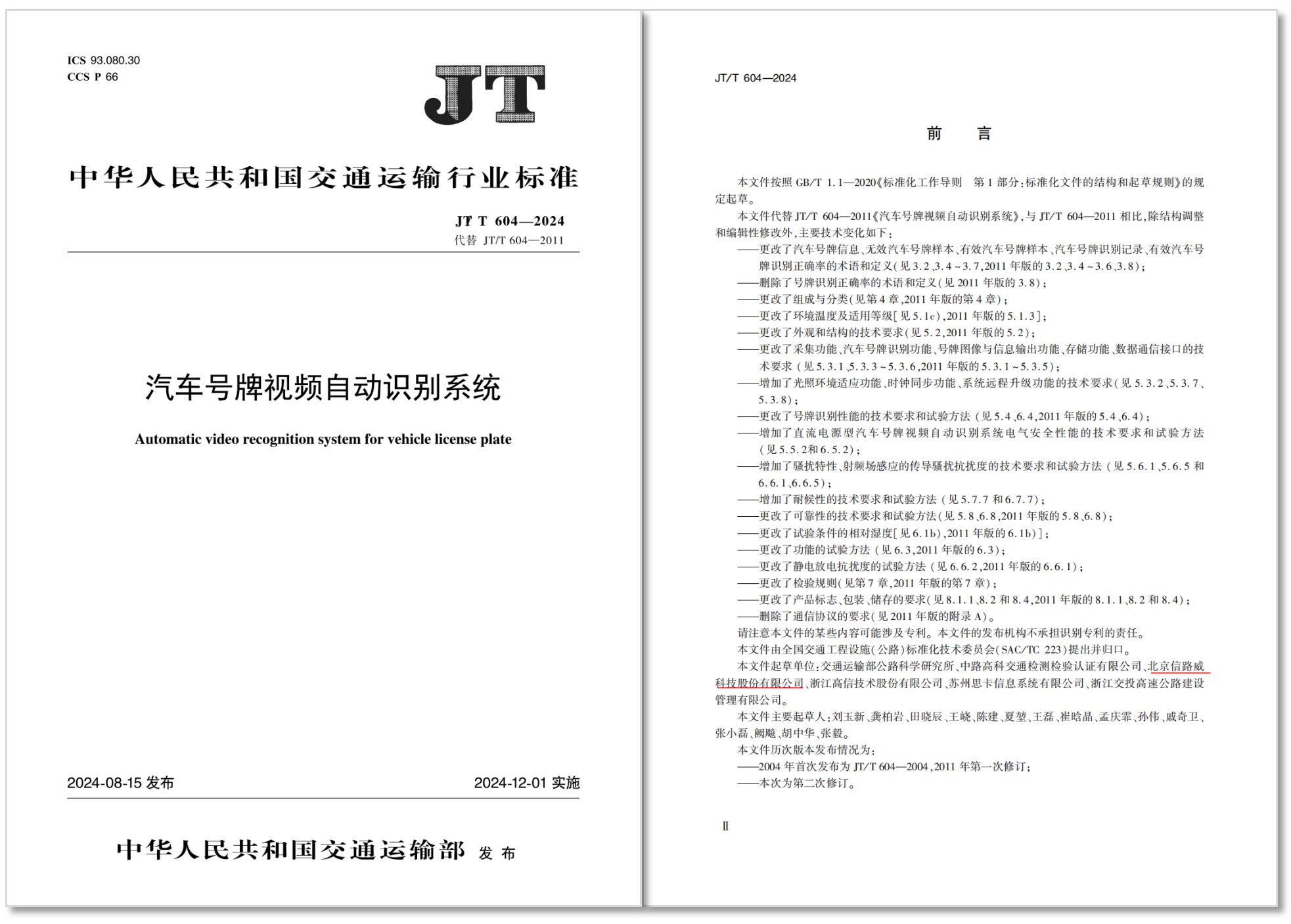 信路威參編的行標(biāo)《汽車號牌視頻自動(dòng)識別系統(tǒng)》將于12月1日實(shí)施