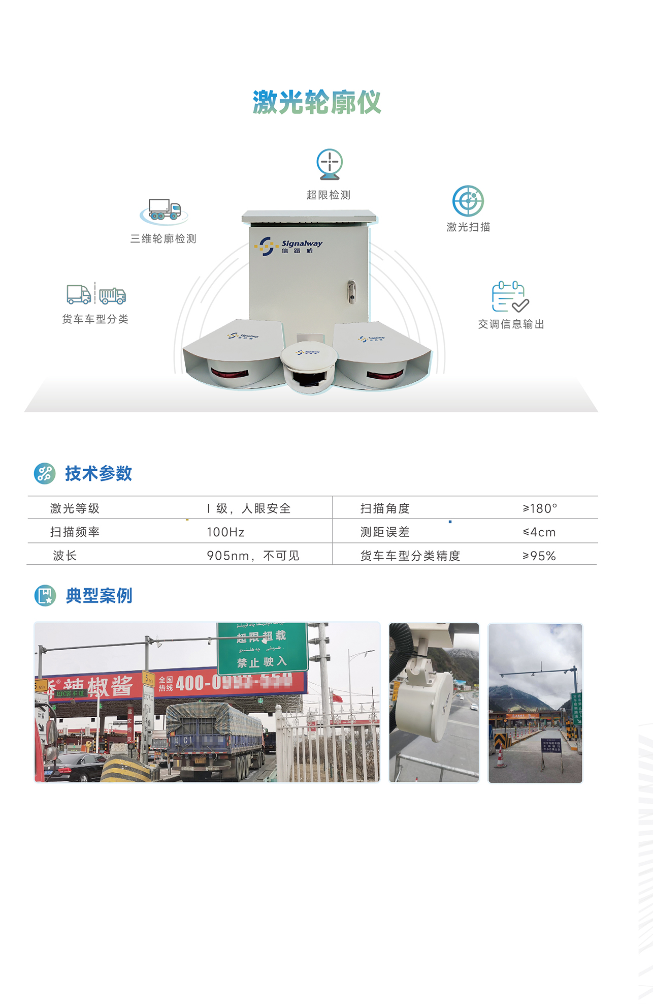 激光車輛外輪廓檢測(cè)系統(tǒng)采用非接觸式主動(dòng)測(cè)量技術(shù),能通過(guò)檢測(cè)區(qū)域的車輛進(jìn)行全方位信息感知與獲取,實(shí)現(xiàn)車輛長(zhǎng)、寬、高尺寸測(cè)量及三維點(diǎn)云圖重構(gòu),適用于高速公路入口治超、不停車稱重檢測(cè)、治超檢測(cè)站、源頭治超站等超限超載檢測(cè)系統(tǒng)。